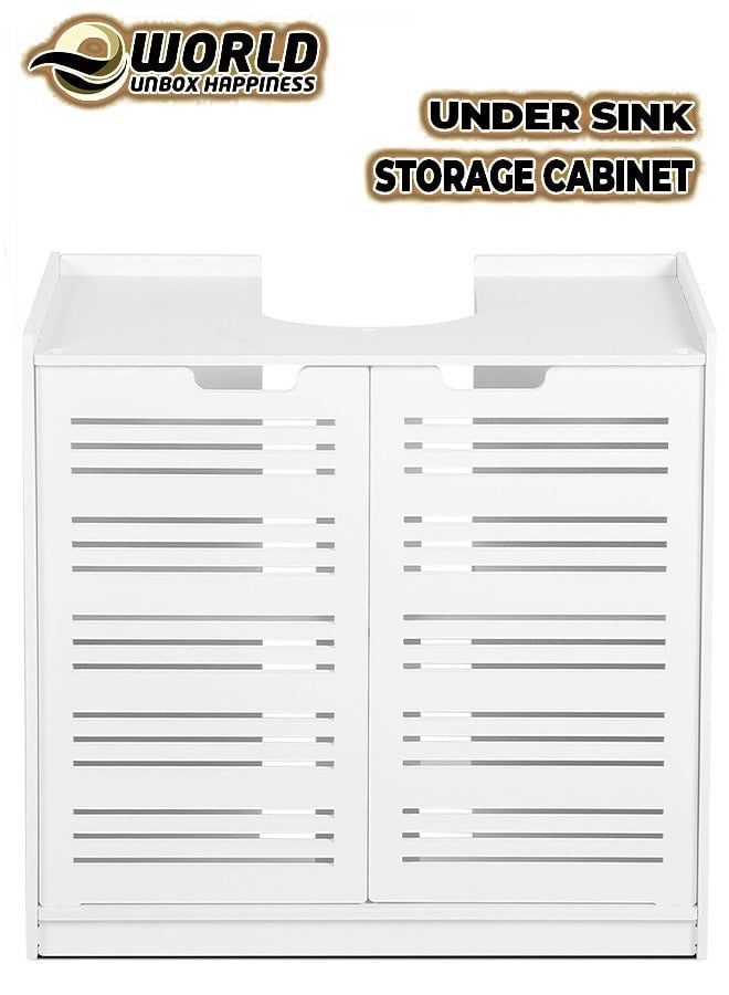 Eworld White Double Door under Basin and Sink Storage Cabinet, Space-Optimized Cupboard and Waterproof Vanity Storage Solution for Modern Bathroom and kitchen