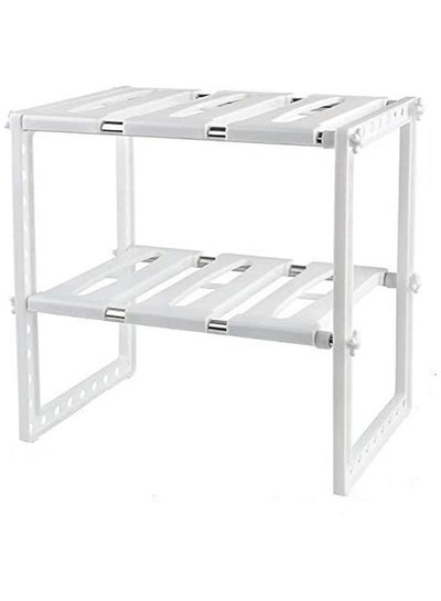 Maximize Under Sink Space: This organizer is designed to make the most of the space under your kitchen sink, turning previously unused areas into functional storage., Extendible Design: The rack can be extended to fit different cabinet sizes, making it versatile and adaptable to your specific needs., Adjustable Height: The shelf's height is customizable, allowing you to store various items, from cleaning supplies to pots and pans, with ease., Sturdy Construction: Made from high-quality materials, this rack is built to be durable and stable, even when holding heavier items., Easy Assembly: It comes with all the necessary hardware and clear instructions for a straightforward installation., Multipurpose Functionality: While designed for under-sink storage, this rack can also be used in other areas of your home, such as the bathroom, pantry, or garage., Sleek and Modern Design: The rack's modern design complements various interior styles, keeping your space looking neat and organized., Efficient Kitchen Management: By keeping your essentials accessible and well-arranged, you can streamline your daily kitchen routines, making meal prep and cleanup more efficient.,