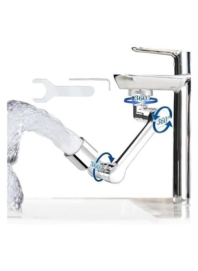 1080° Rotating Design: Easily adjust the water flow angle with a remarkable 1080° rotation for precise control., Universal Splash Filter: Built-in splash filter reduces water splashes and filters out impurities, ensuring cleaner and healthier water., Robotic Arm Sprayer Attachment: Attachable robotic arm sprayer for efficient cleaning, rinsing, and filling tasks., Swivel Faucet Extender: Fits most standard bathroom, kitchen, and laundry sink faucets, enhancing usability., Enhanced Daily Routines: Simplifies tasks like washing dishes, filling pots, cleaning sinks, and personal hygiene., Water Efficiency: Precisely control water direction to reduce waste and promote water efficiency., Easy Installation: Includes all necessary components and clear instructions for straightforward DIY installation., Durable Build: Crafted from high-quality materials to withstand daily use and resist wear and tear.,