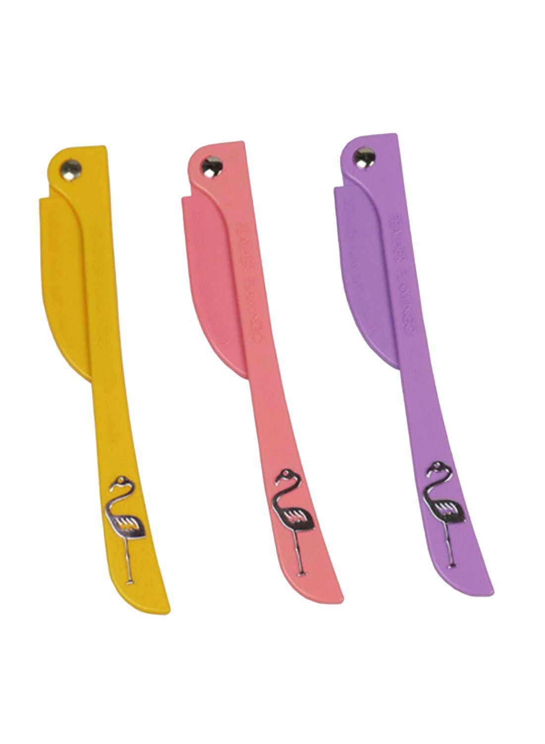Feather-Flamingo 3-Piece Facial Touch-Up Razor Set Yellow/Pink/Purple 15cm