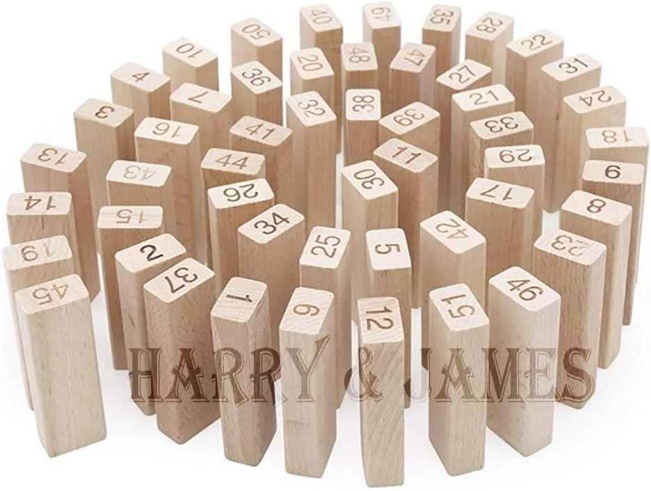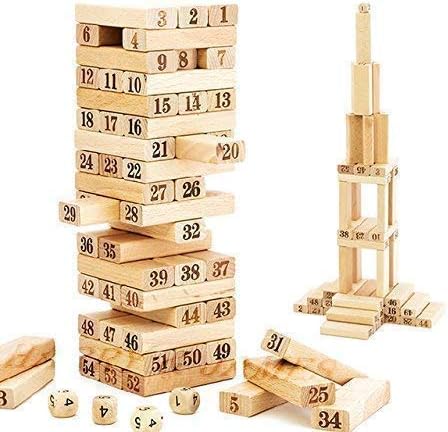 QUALITY: Contains 54 High quality wooden blocks and 4pcs Dice with smooth edges and plane surface.