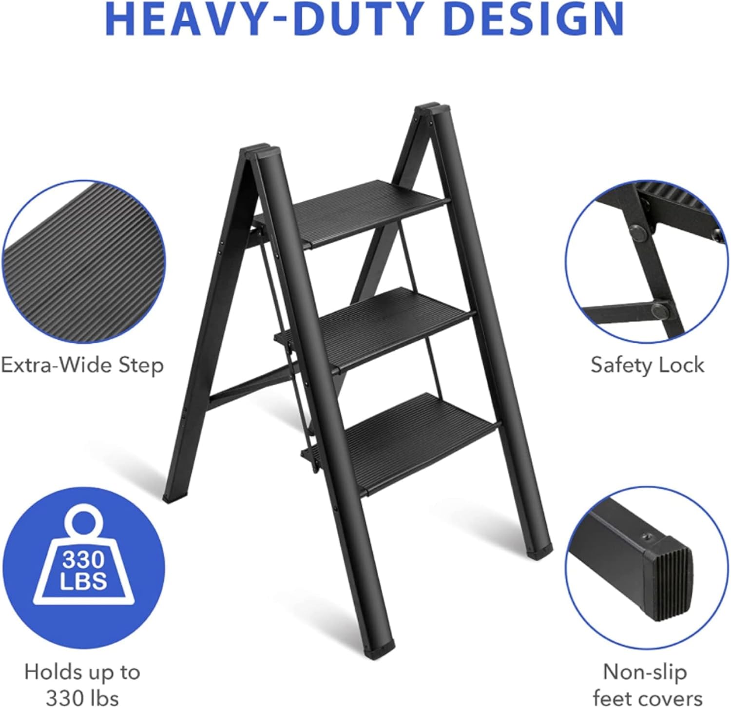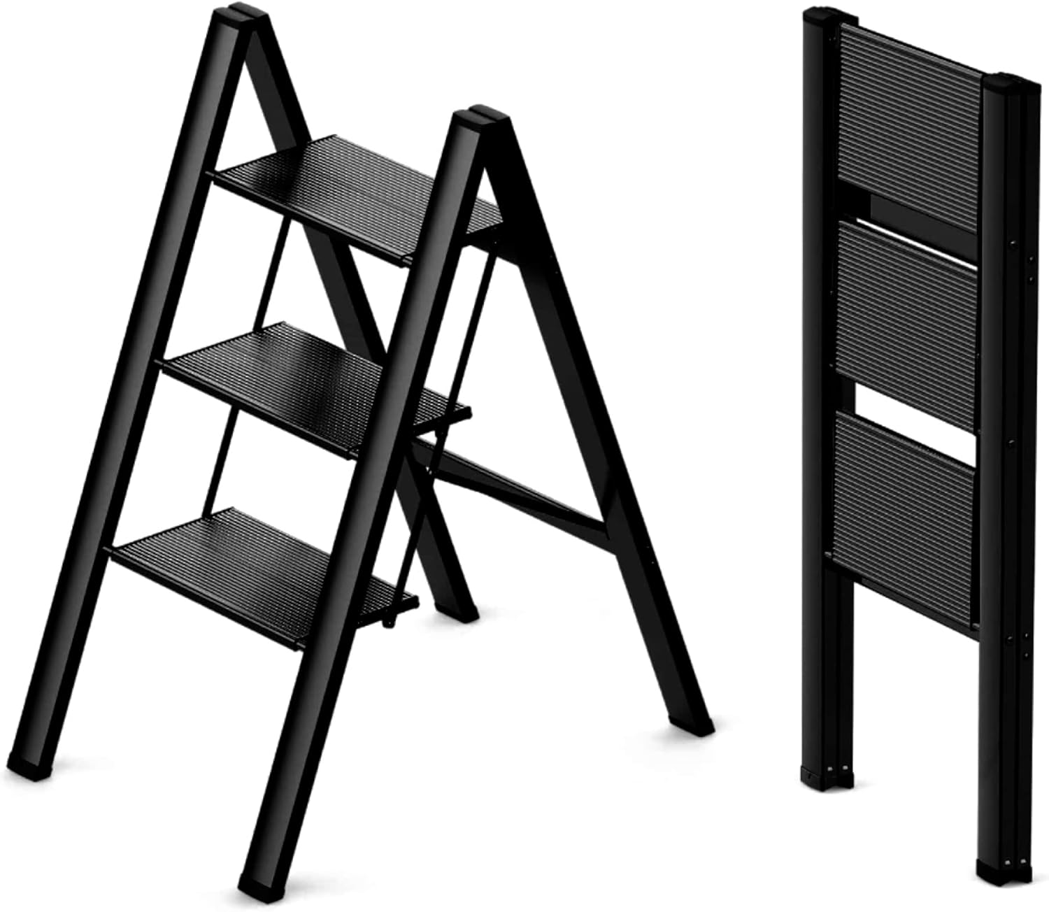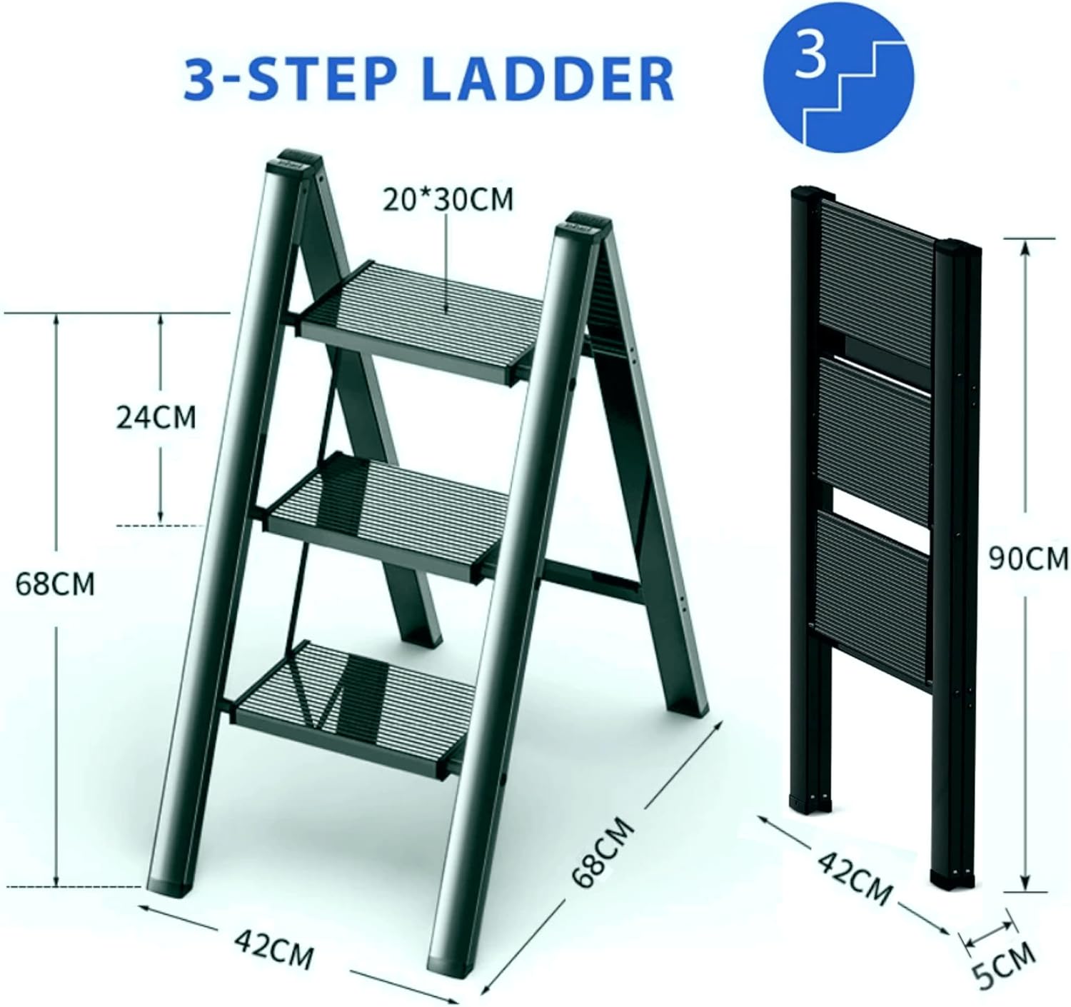 HEXAR 3 Step Ladder Folding Ladder with Anti-Slip Pedal Folding Step Stool Portable Lightweight Foldable Stepladder for Home Kitchen Library Office 150 KG Capacity (3 STEPS)