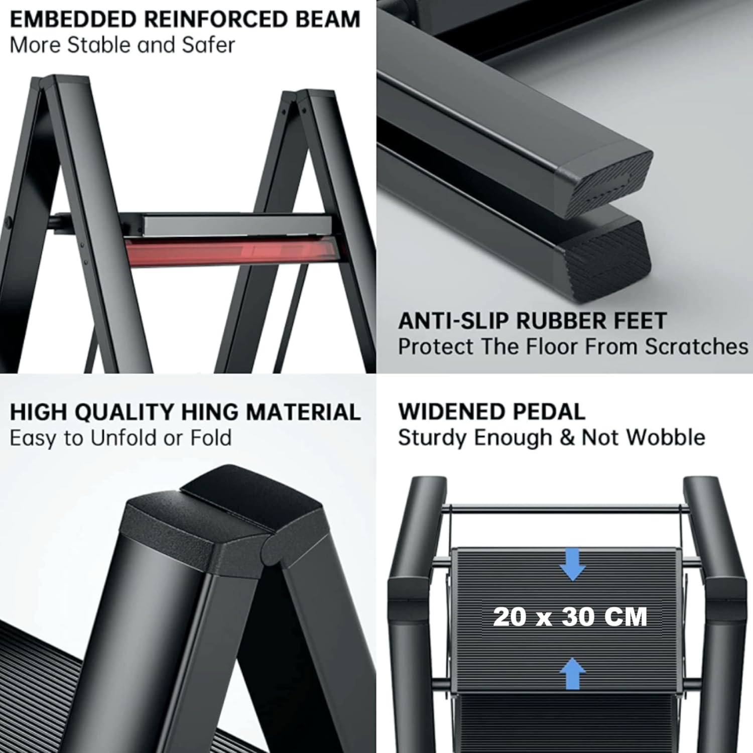 HEXAR 4 Step Ladder Folding Ladder with Anti-Slip Pedal Folding Step Stool Portable Lightweight Foldable Stepladder for Home Kitchen Library Office 150 KG Capacity (4 STEPS)