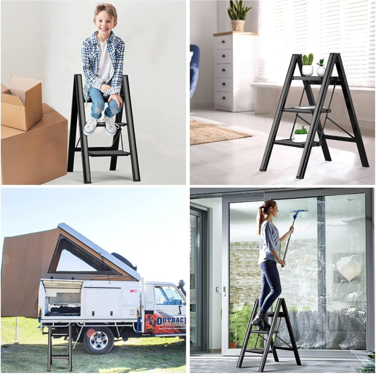 HEXARHEXAR GECKO 4 Step Ladder Folding Step Stool with Wide Anti-Slip Pedal 150kg Portable Ladders for Home and Office Use Kitchen (4 Step Ladder), HX270Dhs. 139.70
