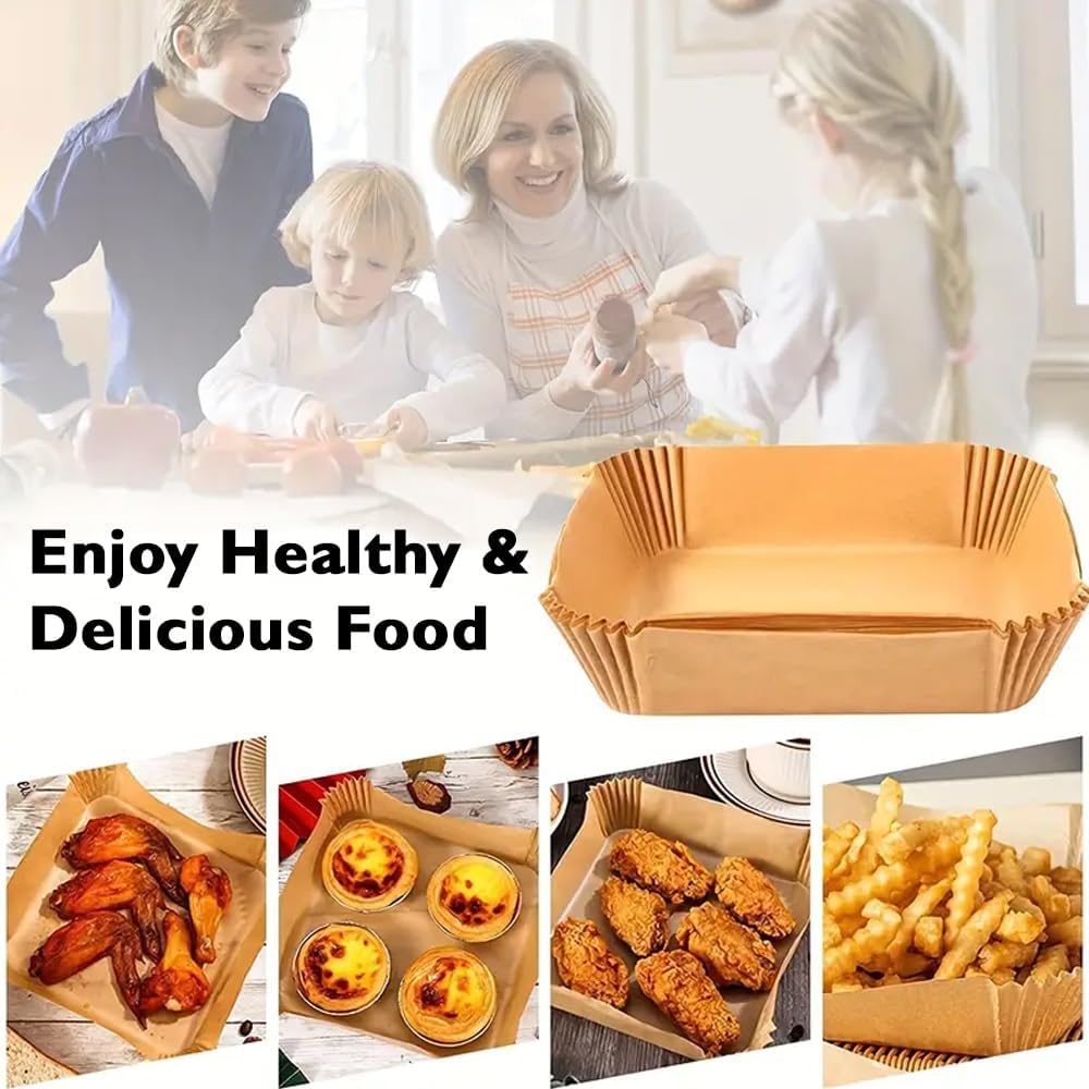KEEP YOUR AIR FRYER CLEAN: This 22x14cm air fryer paper liner is suitable for 2-5 QT air fryers. These disposable paper liners can effectively keep food residue away from fryer, just simply rest the paper on the tray and all the clean will be a breeze, and make it as clean as unused, saving time and effort.