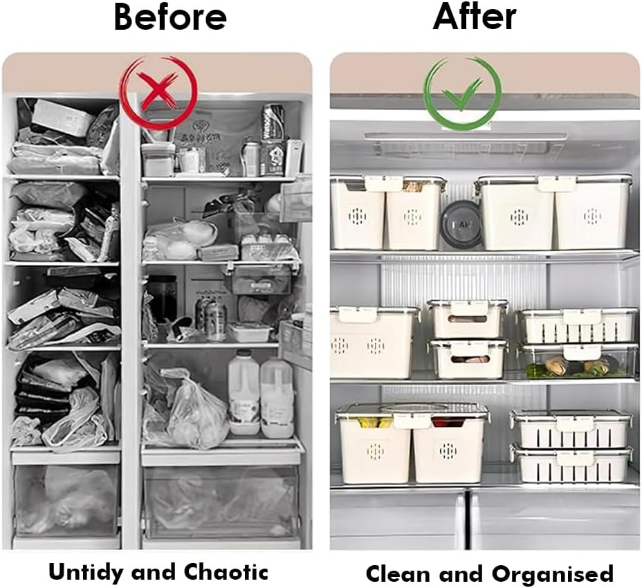 HEXARHEXAR Fruit Storage Containers for Fridge with Lids Handle, 4 Removable Colanders Fruit Organizer Bins, BPA-Free Fresh Produce Saver & Food Box for Food, Vegetable, Egg Storage (Without Basket)Dhs. 33.26