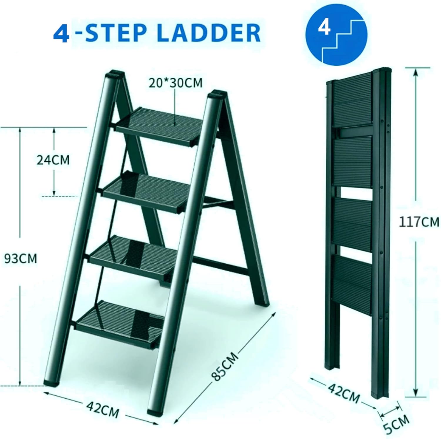 HEXARHEXAR 4 Step Ladder Folding Ladder with Anti-Slip Pedal Folding Step Stool Portable Lightweight Foldable Stepladder for Home Kitchen Library Office 150 KG Capacity (4 STEPS)Dhs. 124.95