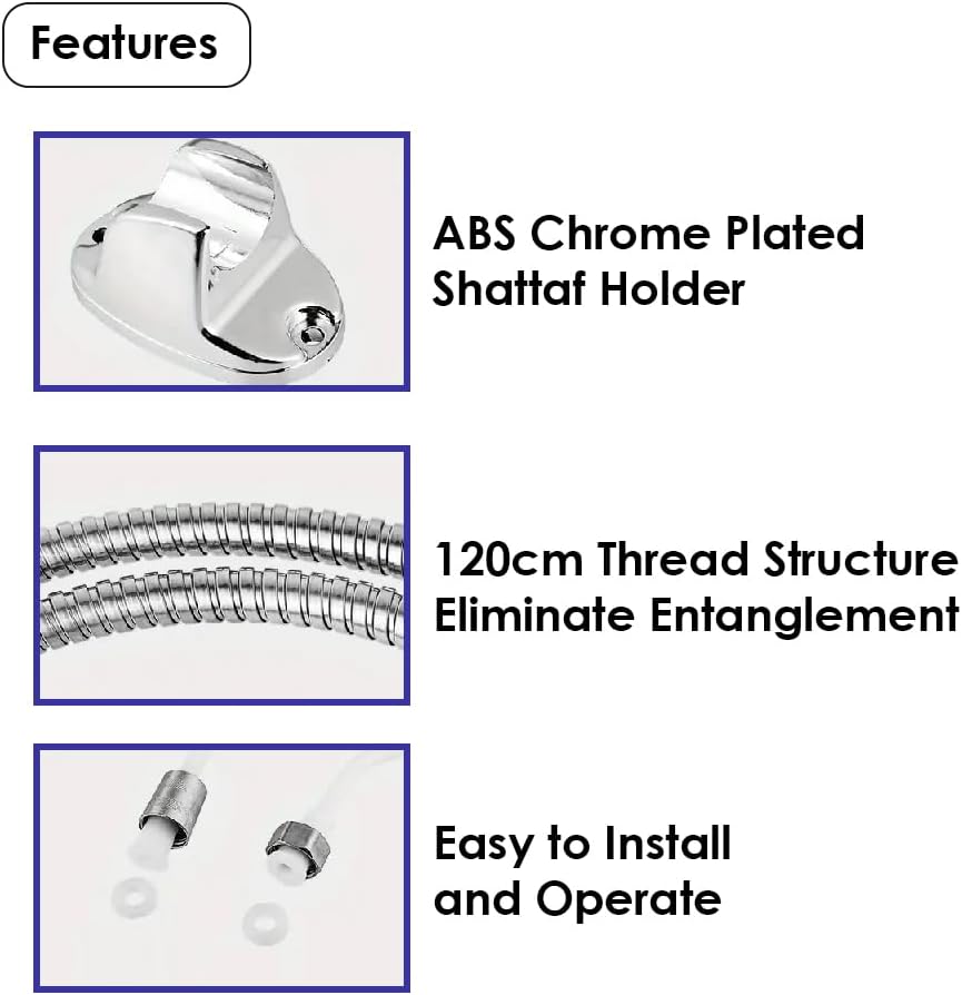 HEXAR Handheld Bidet Sprayer with Wall Bracket, 120cm Bidet Hose, ABS Chrome Plated Shattaf, Jet Spray for Toilet Bathroom, High Pressure Self-Cleaning Shut Off Set