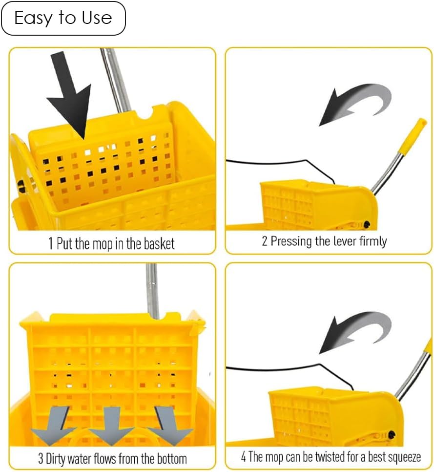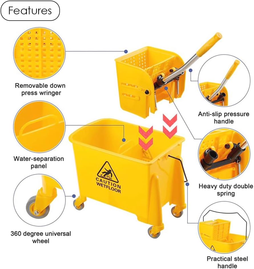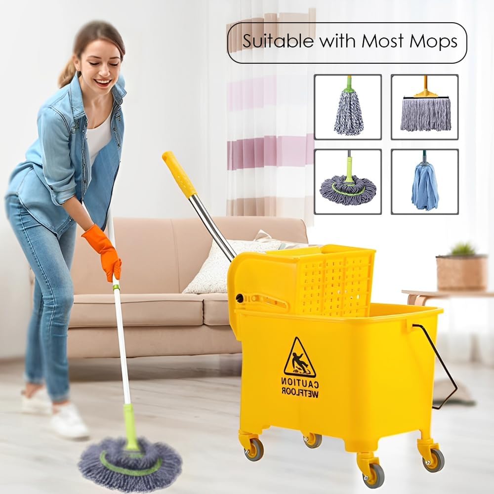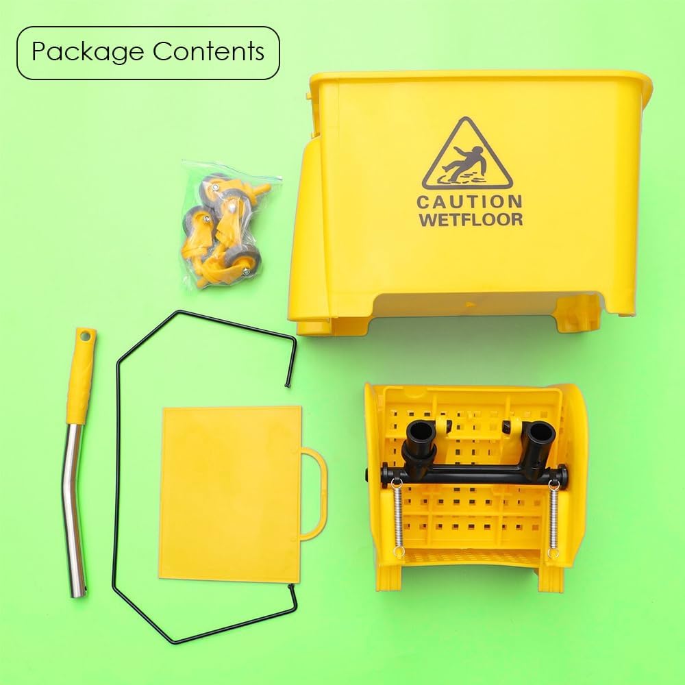 HEXAR Mop Bucket with Wringer Set, 20L Commercial Mop Bucket with Wringer on Wheels, All-in-One Large Capacity, Portable Floor Cleaning, Ideal for Household, Industrial, Restaurant, Janitorial Uses