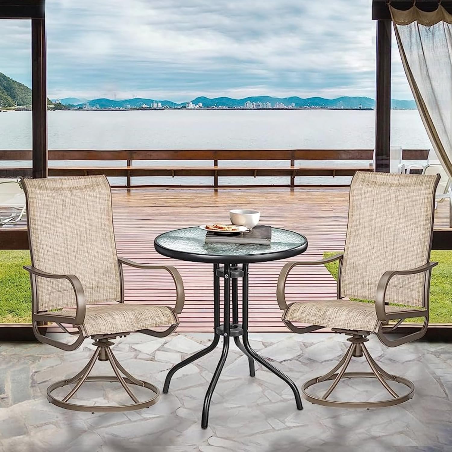 HEXARHEXAR GECKO Round Patio Coffee Side Garden Table - Outdoor Furniture with Metal Frame and Tempered Water Ripple Glass Top for Garden, Backyard, Porch, DeckDhs. 133.75