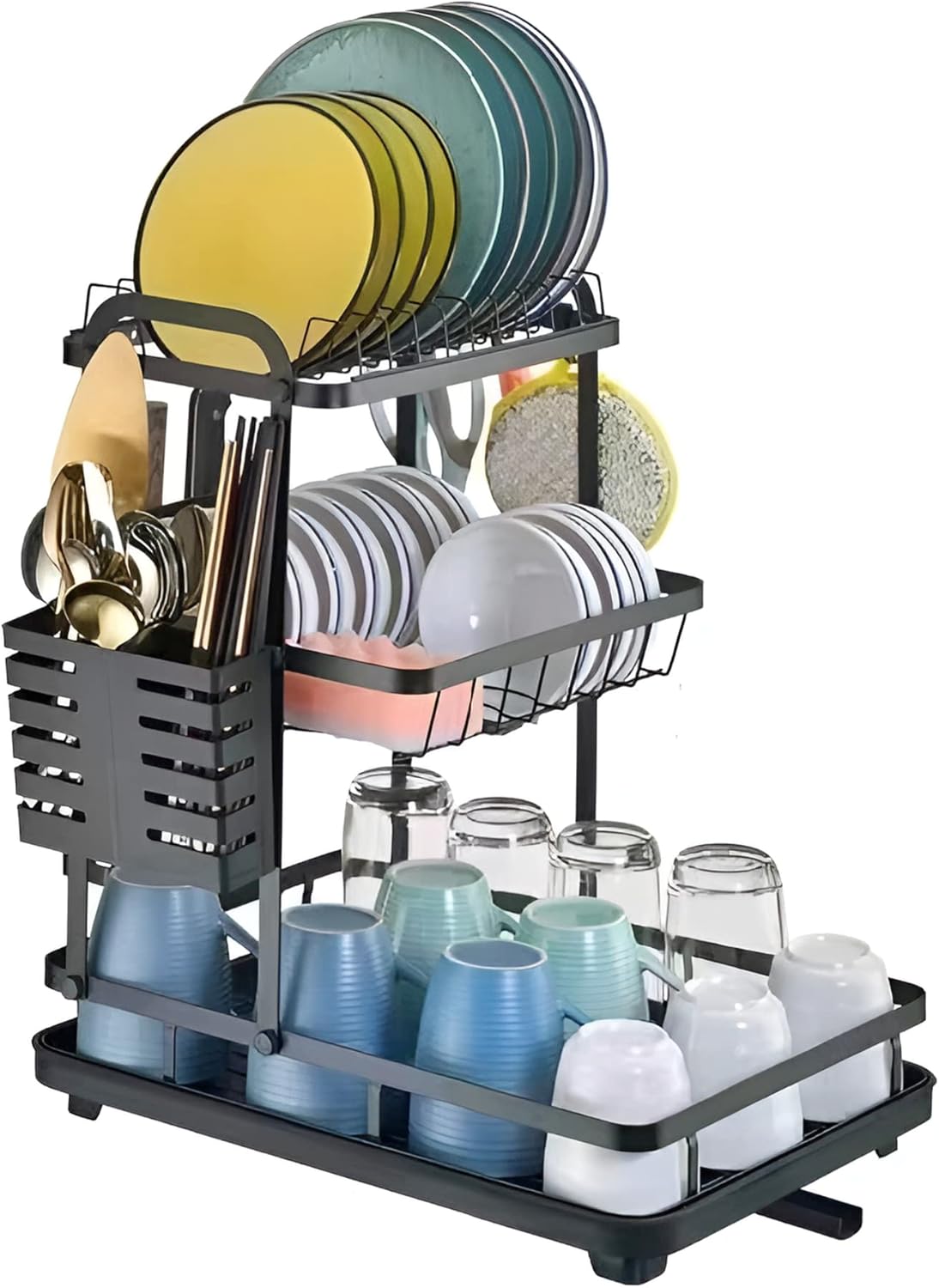 HEXARHEXAR Heavy Duty Over The Sink Dish Drying Stand 3 Tier Large Dish Rack Over The Counter Dish Drying Rack for Kitchen Sink Shelf with Door Dish Organizer with Dust-Proof CabinetDhs. 93.60
