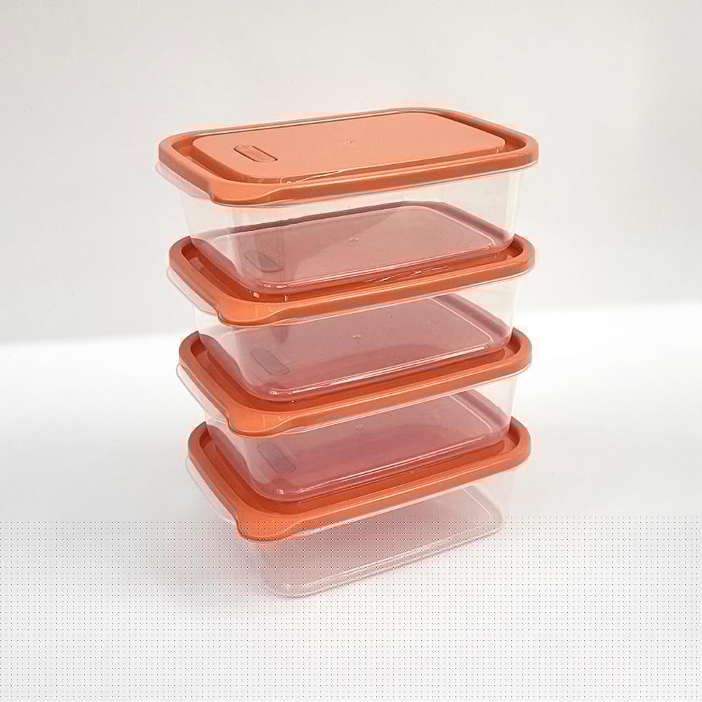 HEXARHEXAR 4-piece Food Storage Container with Lid, Stackable Square Storage Set, Suitable for Freezer and Dishwasher, Plastic Leak-proof Kitchen Storage (Multicolor)Dhs. 21.01