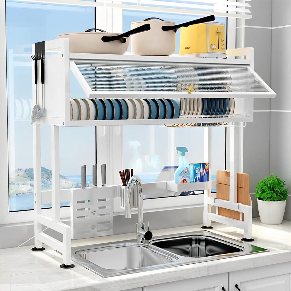 HEXARHEXAR Heavy Duty Over The Sink Dish Drying Stand 3 Tier Large Dish Rack Over The Counter Dish Drying Rack for Kitchen Sink Shelf with Door Dish Organizer with Dust-Proof CabinetDhs. 93.60