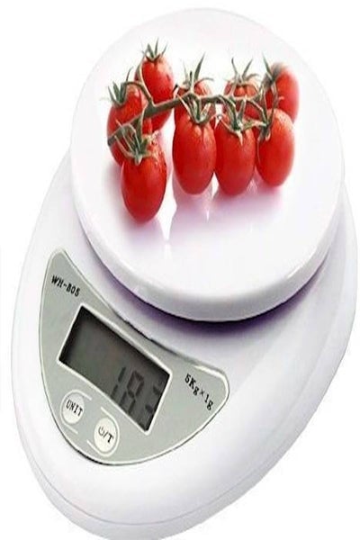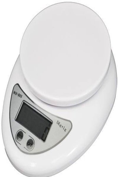 LCD Digital Electronic Kitchen Scale 5kg White 16.3 x 12.8 x 3.5centimeter