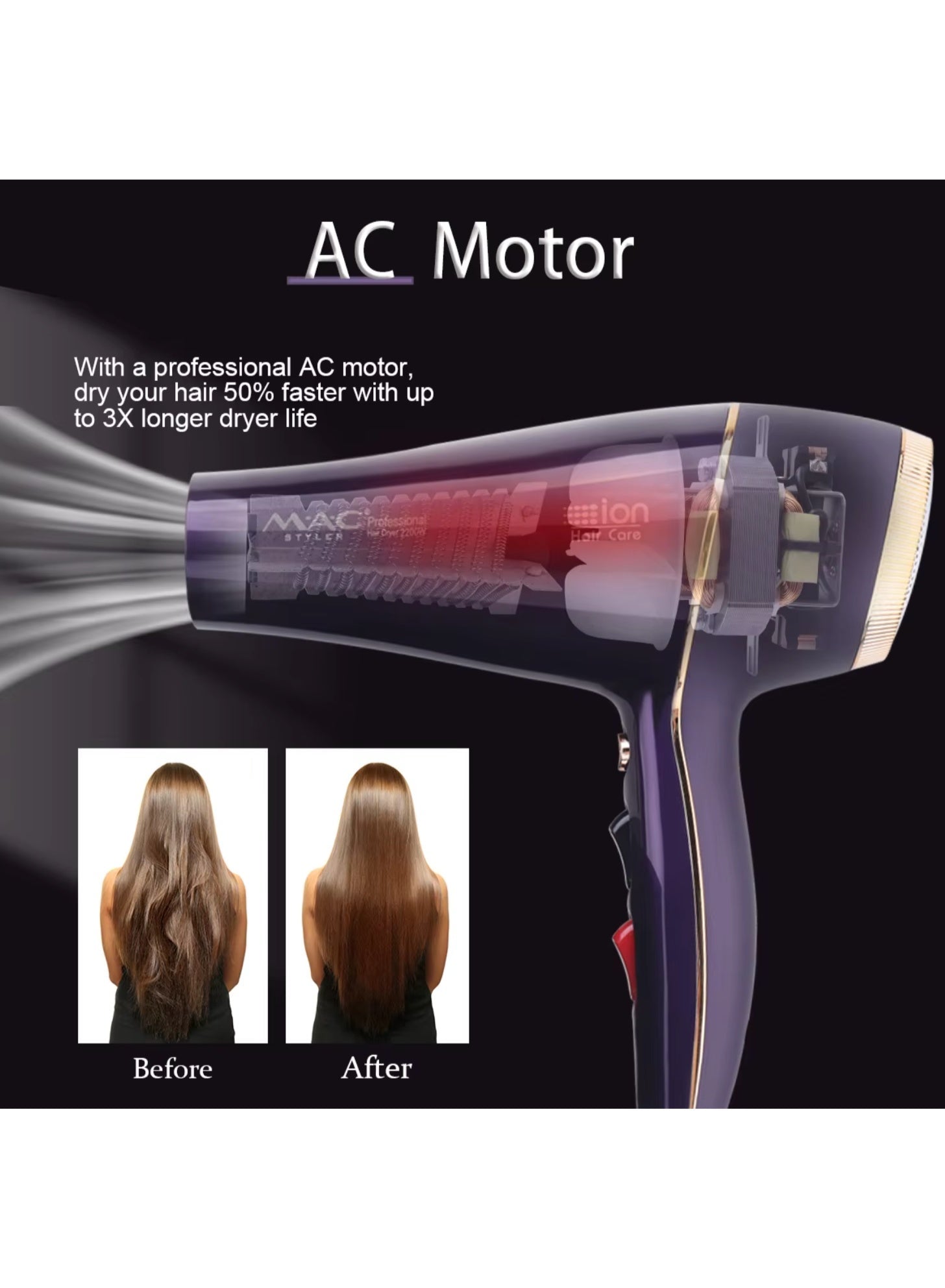 Mac Styler Professional Hair Dryer Durable Salon 2200W High Speed Hair Dryer Styling Tool Powerful Hair Dryer Set MC-6690A