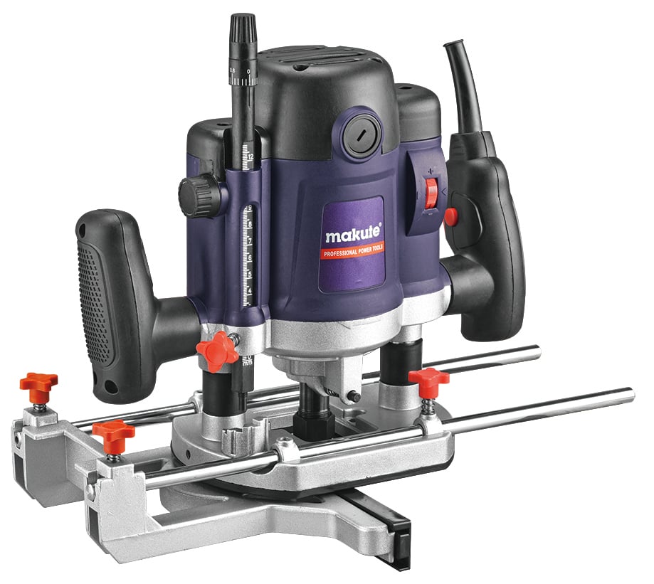 Makute Electric Router, 12mm Carbon Steel, Variable Speed 6000-22000 RPM, 360° Adjustable Side Handle, Soft Grip for Antiskid Comfort, 2200W- ER002