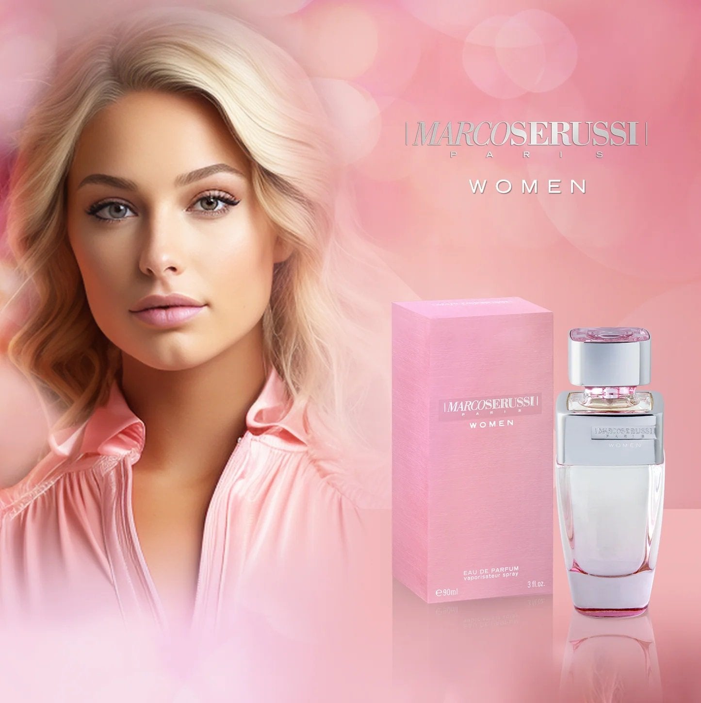 Finally she decided to show up to the public and announce her presence. For the first time she reveals her aura to the world and allows each female to discover the woman inside her." Marco Serussi Women perfume is the new trend for the elegant, intelligent and stunning ladies.