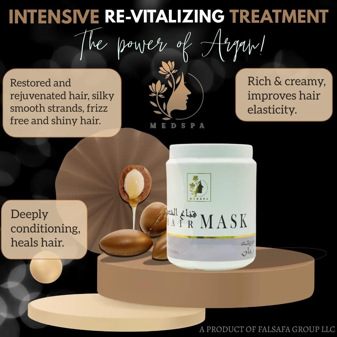 MEDSPA Argan Hair Mask, Intensive Re-vitalizing Treatment with Hyderation, Moisturization and Repair for All Hair Types 1kg. 35oz