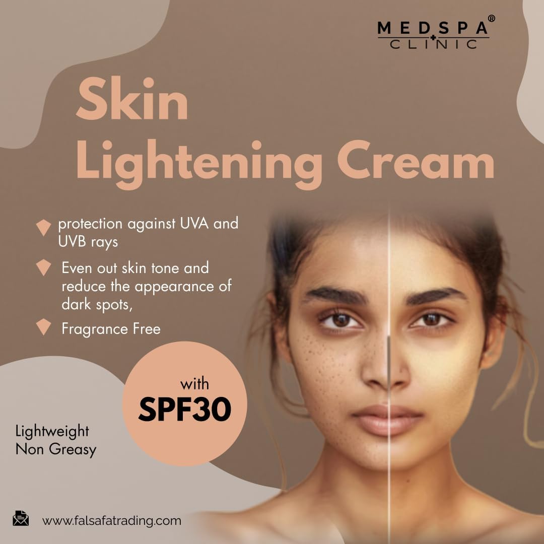 MedspaClinic Skin Lightening Cream with SPF 30-100g, Moisturizing, Brightening, UV Protection, Daily Moisturizer, Sun Protection, Fragrance Free, for All Skin Types
