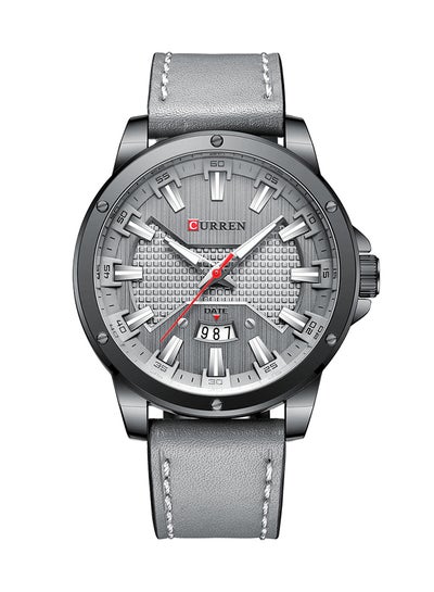 Men's Waterproof Geniune Leather BAnd With CalAnder Quartz Watch 8376 - 46 mm - Grey