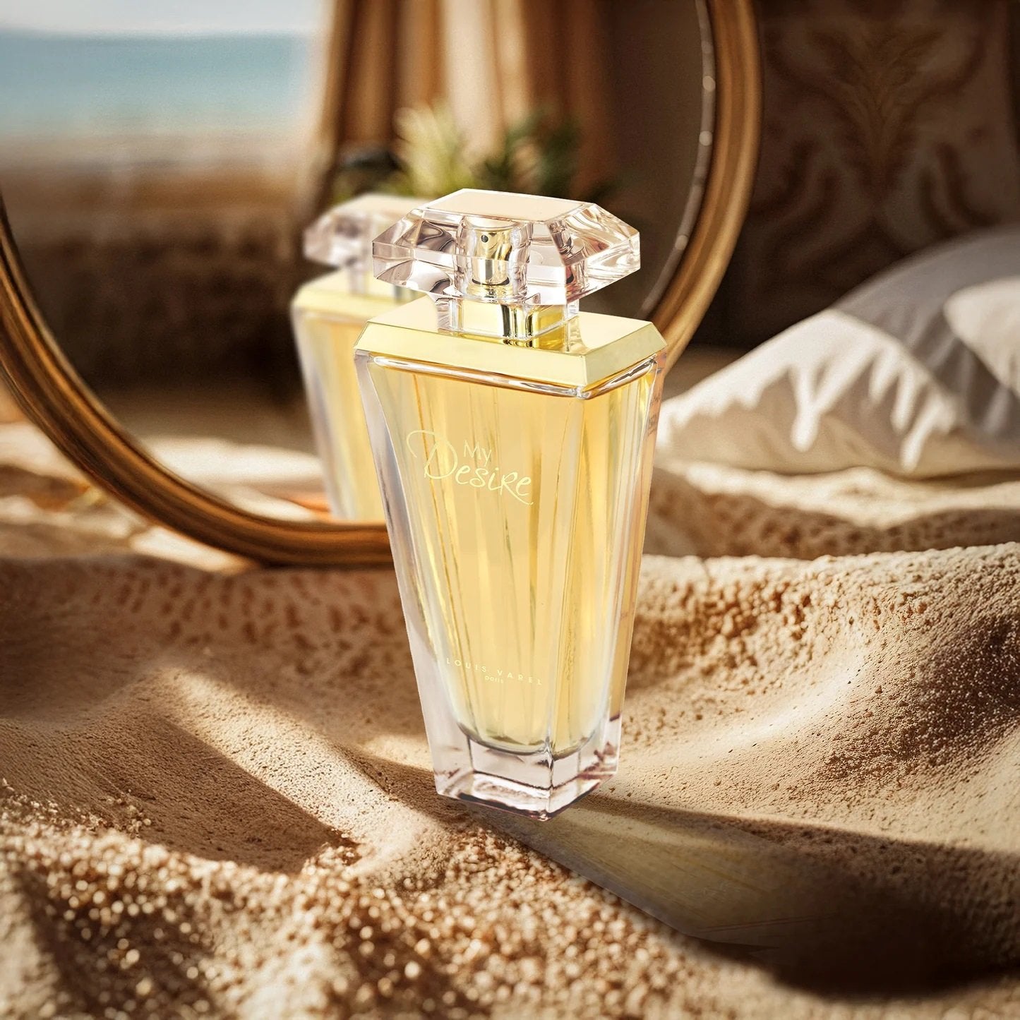 My Desire perfume carries her soul in a floral bouquet and takes her beauty which is mixed with her pure feelings to reach everywhere.