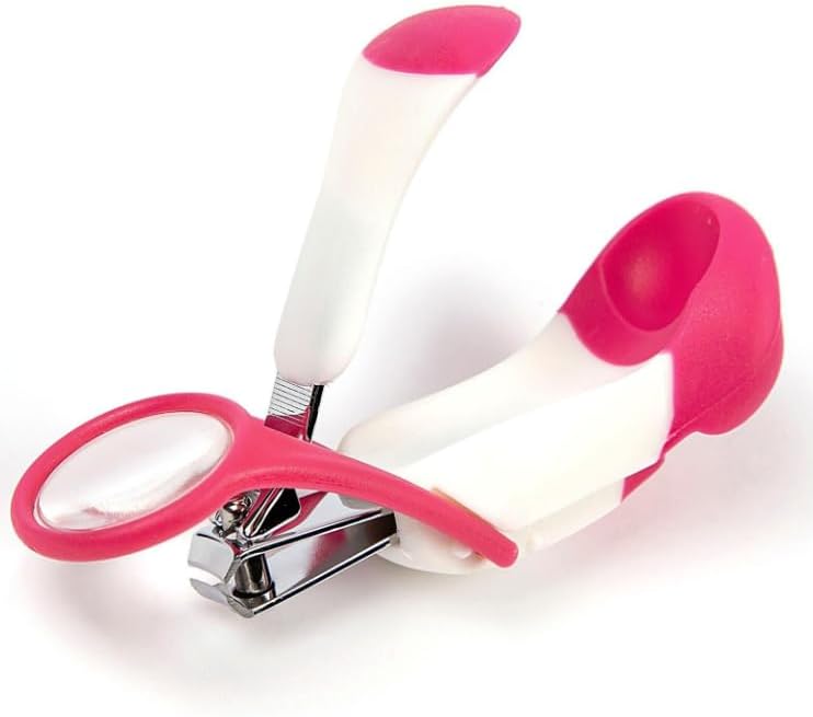 Nail Clipper with Magnifier and Ergonomic Grip, Pink and White