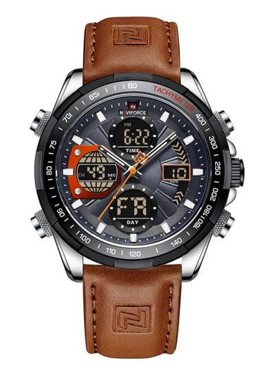 Naviforce 9197 Mens Digital Analog Watches Waterproof Sport Leather Band Watch with Alarm Dual Display Date Wristwatch