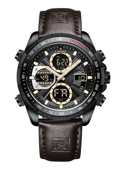 Naviforce 9197 Mens Digital Analog Watches Waterproof Sport Leather Band Watch with Alarm Dual Display Date Wristwatch