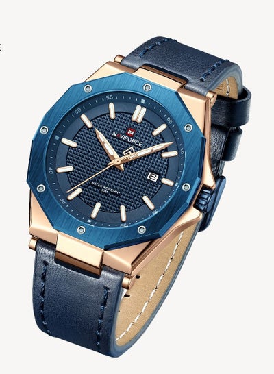 NAVIFORCE 9200 Men's Watch Fashion Casual Polygon 3ATM Waterproof Quartz Leather Clock