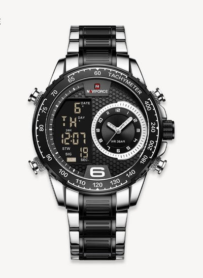 NAVIFORCE Men Luxury Watches Fashion Stainless Steel Calendar LCD Display Waterproof Quartz Wristwatch NF9199S