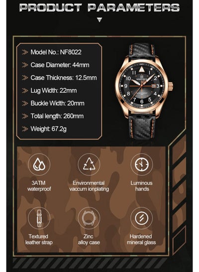 NAVIFORCE Men's sports calendar quartz glow-in-the-dark waterproof watch NF8022