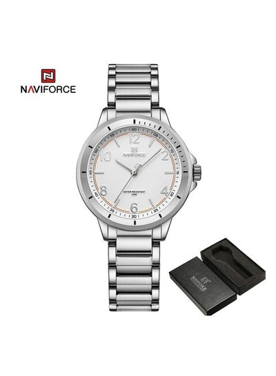 The NAVIFORCE Fashion Casual Stainless Steel Waterproof Watch Business Classic Quartz Wristwatch 5021 is a men's wristwatch with a stylish and classic design. It features a stainless steel case and band, with a black or white dial and silver-tone hands and markers.