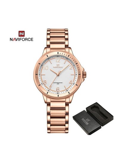 The NAVIFORCE Fashion Casual Stainless Steel Waterproof Watch Business Classic Quartz Wristwatch 5021 is a men's wristwatch with a stylish and classic design. It features a stainless steel case and band, with a black or white dial and silver-tone hands and markers.