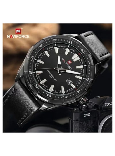 NAVIFORCE NF9056 Men's Casual Leather Strap Quartz Watch -Black