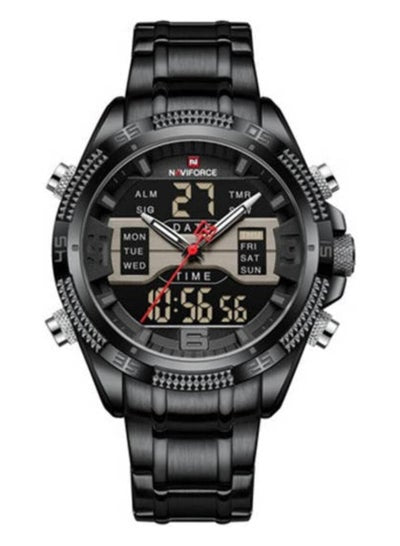The NAVIFORCE NF9201 is a men's watch that features both digital and analog displays, as well as a complete calendar function. It has a stainless steel case and band, making it durable and resistant to water.