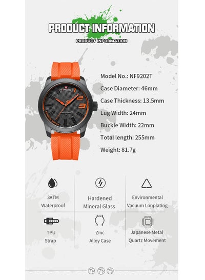 NAVIFORCE NF9202T Silicone Band Sport Waterproof Watch for Men Casual Quartz Wristwatch Shockproof Design Male Clock Relogio Masculino