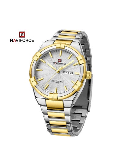 NAVIFORCE Watch for Men Waterproof 2023 Fashion Casual Steel Strap Watches Gold with Double Calendar Luminous hands Display Quzrtz Wristwatch NF9218