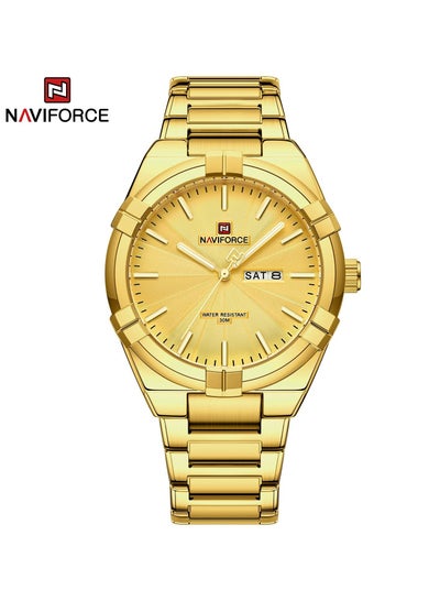 NAVIFORCE Watch for Men Waterproof 2023 Fashion Casual Steel Strap Watches Gold with Double Calendar Luminous hands Display Quzrtz Wristwatch NF9218