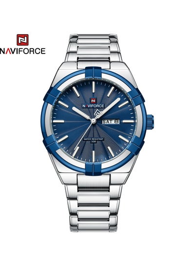 NAVIFORCE Watch for Men Waterproof 2023 Fashion Casual Steel Strap Watches Gold with Double Calendar Luminous hands Display Quzrtz Wristwatch NF9218