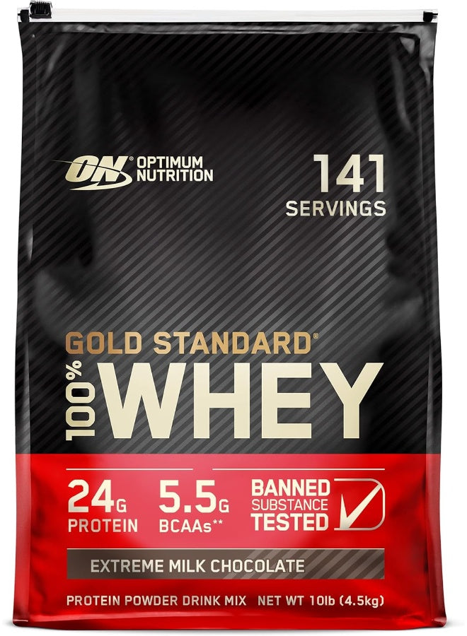 Optimum Nutrition (ON) Gold Standard 100% Whey Protein Powder Primary Source Isolate, 24 Grams of Protein for Muscle Support and Recovery - Extreme Milk Chocolate, 10 Lbs, 141 Servings (4.51 KG)