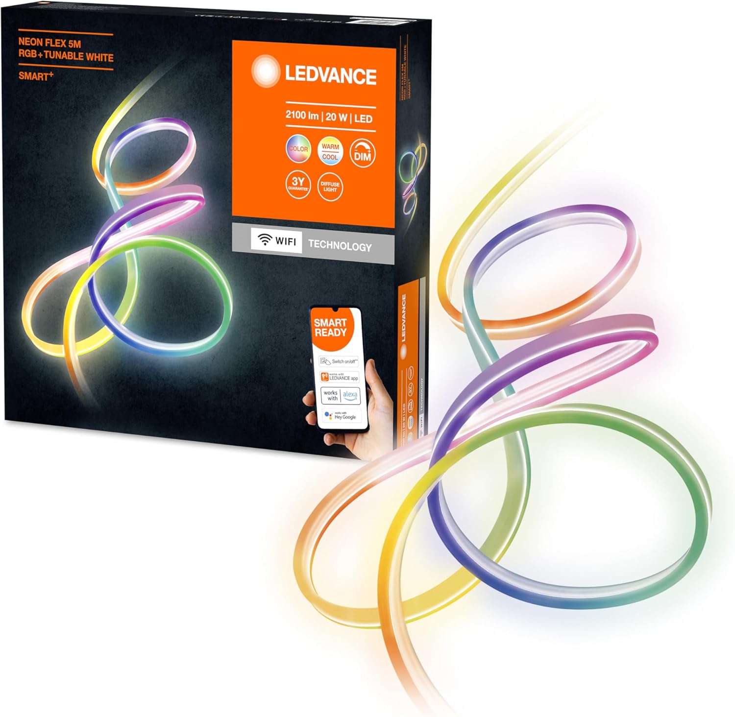 LedvanceLEDVANCE Smart LED Ambiance Lightstrip with WiFi Technology for Outside (with EU-Plug) 5 Meter IP44 Flexible and Bendable Light Color Changeable(2700-6500K) RGB Colors Changeable IP44 SMART+ BT623.86