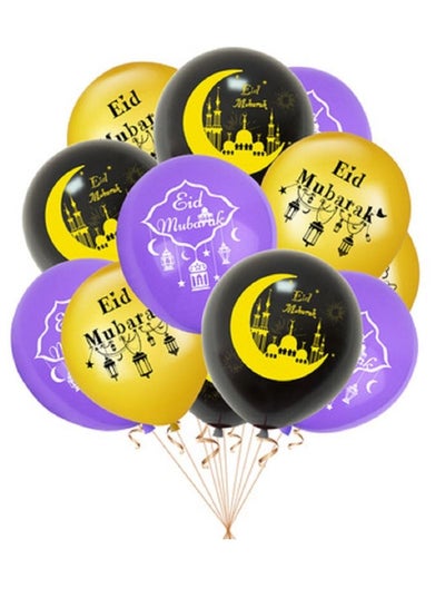 Package Includes: 3 x 12 inch Eid Mubarak Purple balloons, 3 x 12 inch Eid Mubarak Gold balloons, 3 x 12 inch Eid Mubarak Black balloons, Material and Size - All Eid Mubarak Latex Balloons are 12 inchs in size and made of high-quality latex., Eid Mubarak Balloon set can be filled either with air or Helium, based on your requirements., Perfect for: Eid Mubarak Decoration, Eid Decorations for Home, Eid Mubarak Balloon Set to give a festive atmosphere to your Eid and Ramadan Party!,