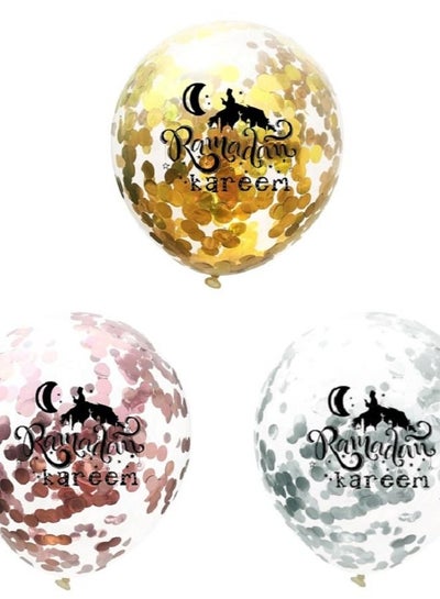 • Package Includes: 2 x 12 inch Ramadan Kareem Silver confetti balloons, 2 x 12 inch Ramadan Kareem Gold confetti balloons, 2 x 12 inch Ramadan Kareem Rose Gold confetti balloons, • Materials and Size - All Ramadan Kareem Confetti Balloons are 12 inchs in size and made of high-quality latex. The Confetti is pre-filled., • Ramadan Kareem Balloon set can be filled either with air or Helium, based on your requirements., • Perfect for: Ramadan Kareem Decoration, Ramadan Decoration for Home, Ramadan Kareem Balloon Set to give a festive atmosphere to your Eid and Ramadan Party!,