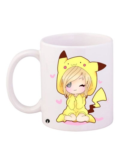 Pikachu Hoodie Printed Coffee Mug White/Yellow/Brown 11ounce