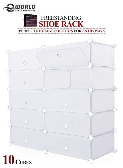 Portable 10 Cubes Freestanding Entryway Shoe Rack DIY Rectangular Cube Shelf Unit Household Storage Organiser Cabinet for keeping Shoes Clothes Garments
