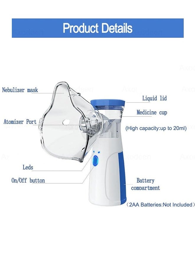 Portable Handheld Nebulizer Machine, Mini Ultrasonic Vaporizer with Adjustable Mist Output, Efficient Medication Delivery for Adults and Children, Includes Masks and Mouthpieces, Perfect for Home and Travel Use