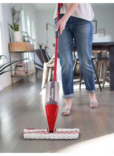 A practical Vileda Spray and Clean Spray Mop comes with refillable tank for quick and through cleaning here and there. Spraying Cleaning, wiping, clean. The Vileda spray and clean spray mop covers twice as much area than conventional products. The strength of the cover stands out with its combination of white and red micro fibers. The absorbent microfiber Clean Extra thoroughly and removes even fatty deposits, while the red power fiber hair, crumbs and dirt particles. The application is a piece of cake. The spray tank easily at the touch of a button quickly and easily with the 1-2 Spray Active Cleaner or other universal cleaner filling and to replace. When you step lever a fine spray mist sprayed on the floor – Pinch and you're done. One bucket is therefore any more. The Vileda spray and clean is suitable for all floors.