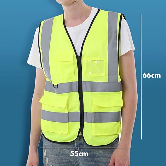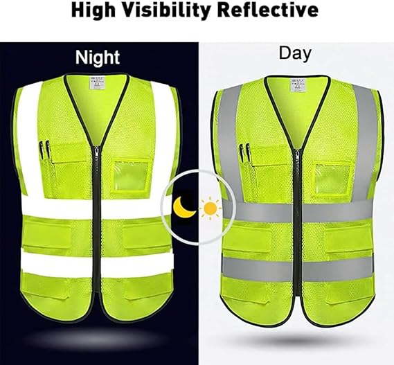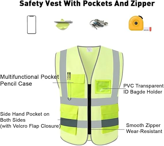 Reflective Vest Working Clothes High Visibility Day Night Warning Safety Vest Construction Safety Clothing Class 2 Safety Vests ANSI with 5 Pockets Zipper