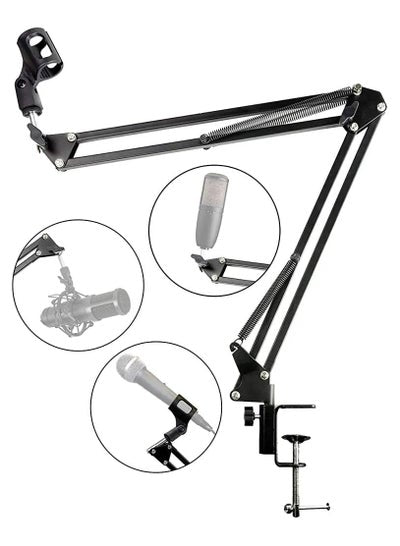 The RockJam scissor microphone stand provides a microphone clip that allows you to accommodate microphones of varying sizes.