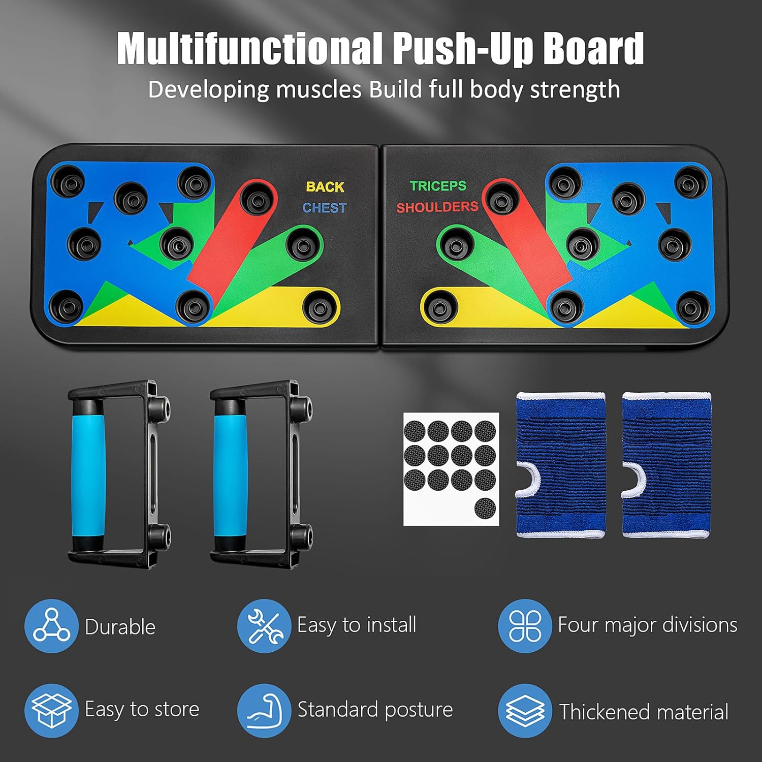 Anti-Slip Design for Safety: Equipped with anti-slip knobs and handles, this push-up board ensures stability and safety during workouts. The rubber feet prevent the board from slipping on the ground.